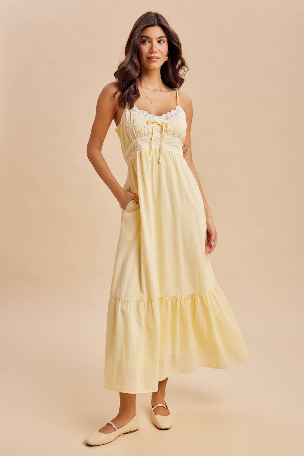 Elevate your wardrobe with this charming eyelet maxi dress, crafted from breathable cotton with delicate perforated detailing. The romantic silhouette features a functional button-down front, adjustable shoulder straps for a custom fit, and a partially smocked back for gentle shaping. Scalloped lace trim adds feminine appeal, while practical side pockets and a hidden zipper keep the design seamless. Fully lined for comfort and confidence all day long.