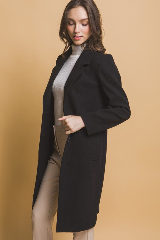 Throw caution to the wind in this fearless longline coat. Unlined for effortless movement, it features a bold button front and strategically placed side pockets that refuse to compromise on function. Perfect for those who dress with intention and never settle for ordinary.
