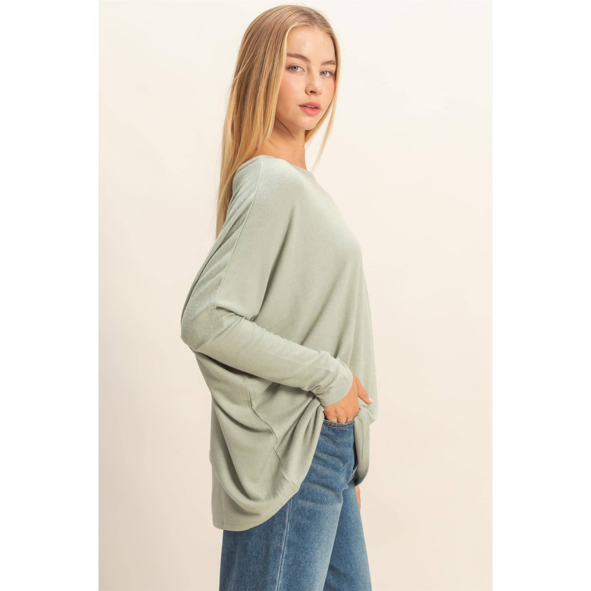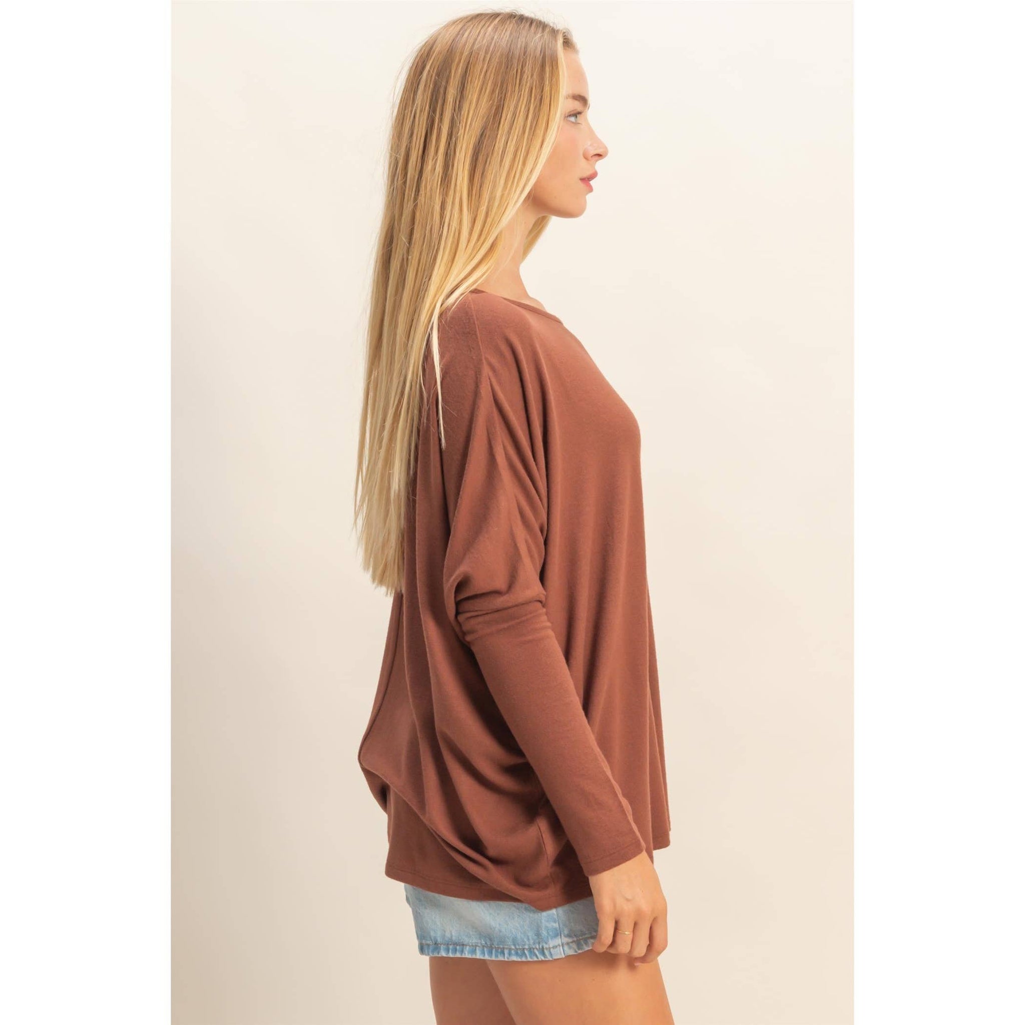 This top features a casual relaxed fit and oversized silhouette, perfect for everyday wear or low-key evenings out. It's designed with dropped shoulders for added comfort, making it ideal for layering under jackets or pairing with your favorite jeans. Experiment by accessorizing with bold necklaces or layer under a blazer for a touch of sophistication. 60% Rayon 35% Polyester 5% Spandex