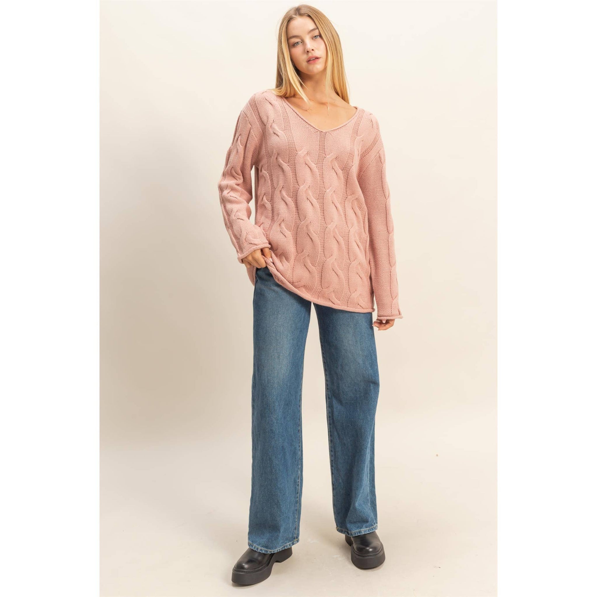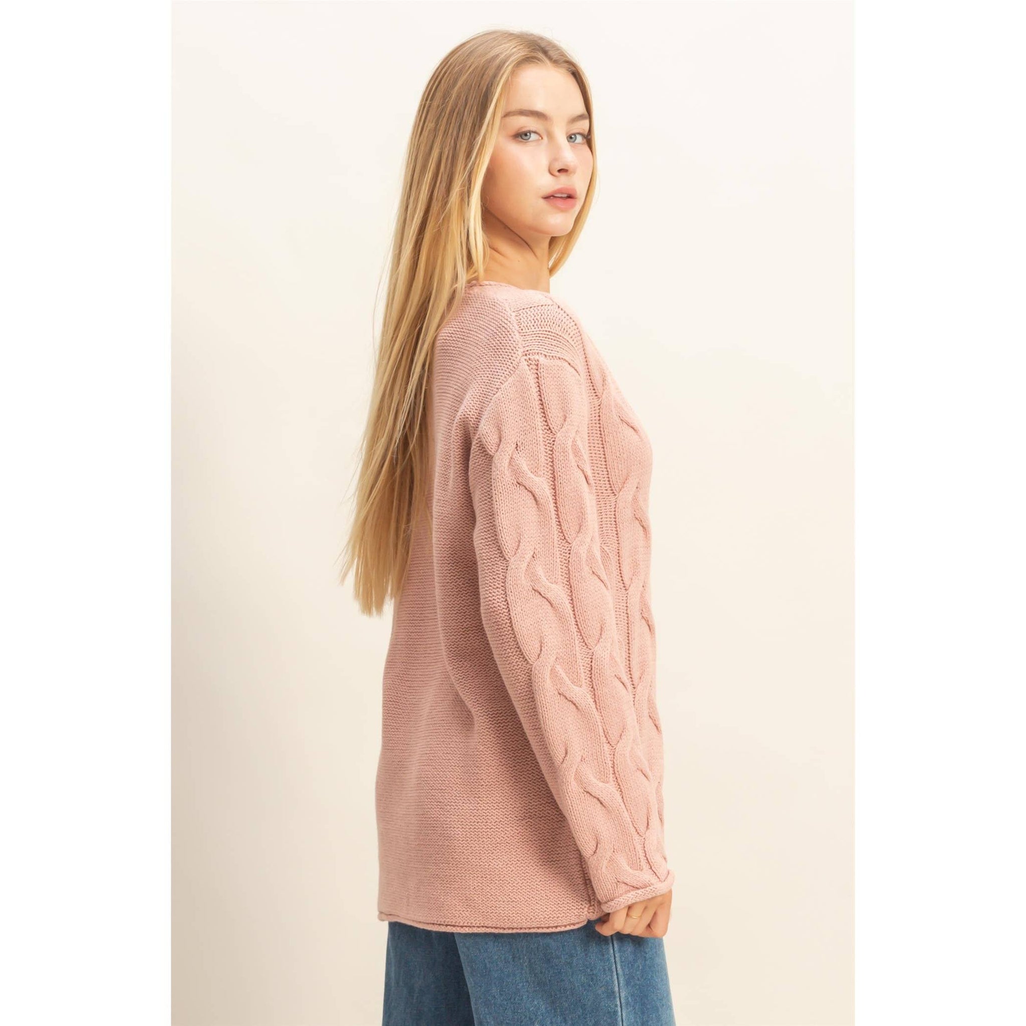 Explore the timeless charm of a pullover sweater, featuring an intricate cable knit design and cozy V neckline that brings a touch of refinement. Ideal for versatile styling, layer it over crisp shirts for a polished look or pair it with denims for a casual outing.