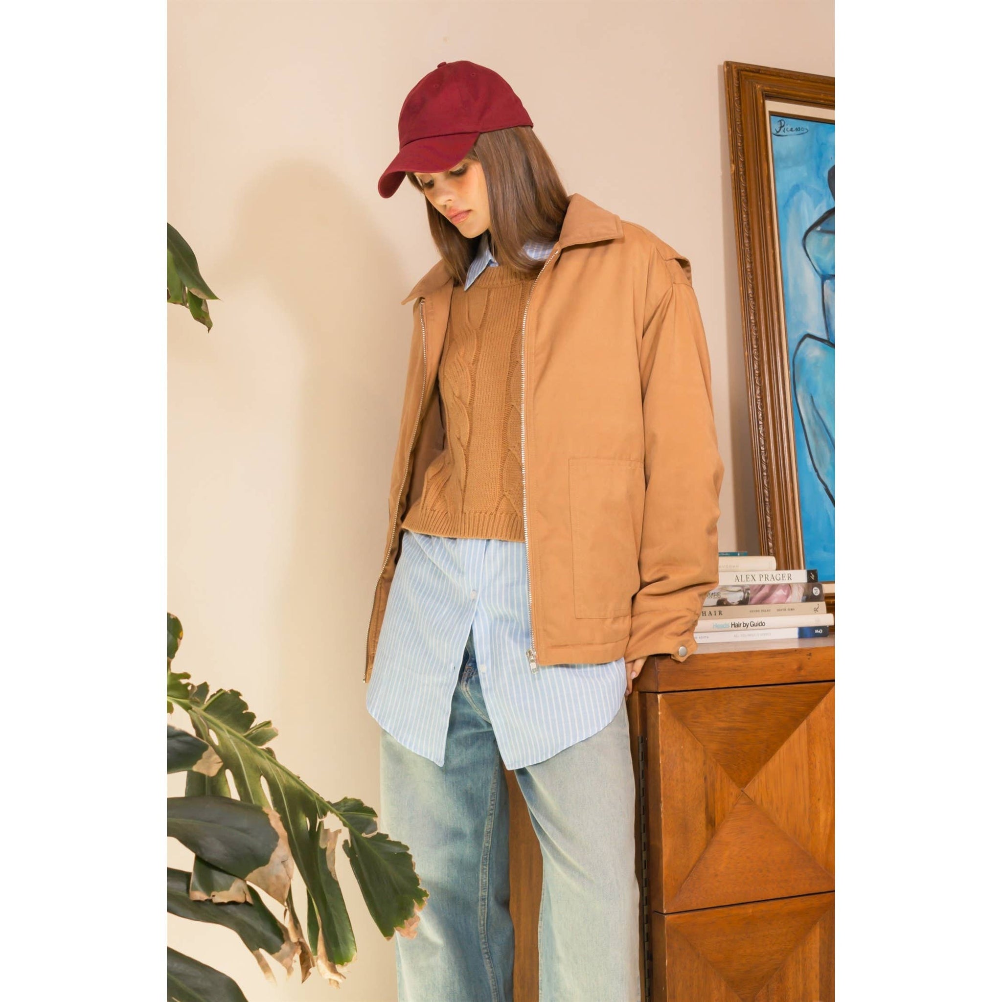 This outerwear piece showcases a modern silhouette with a clean zip front design, perfect for adding a polished touch to any ensemble. Its structured fit provides a smart, tailored look, ideal for layering over tees or light sweaters. Effortlessly transitions from office to outings, ensuring both style and comfort.