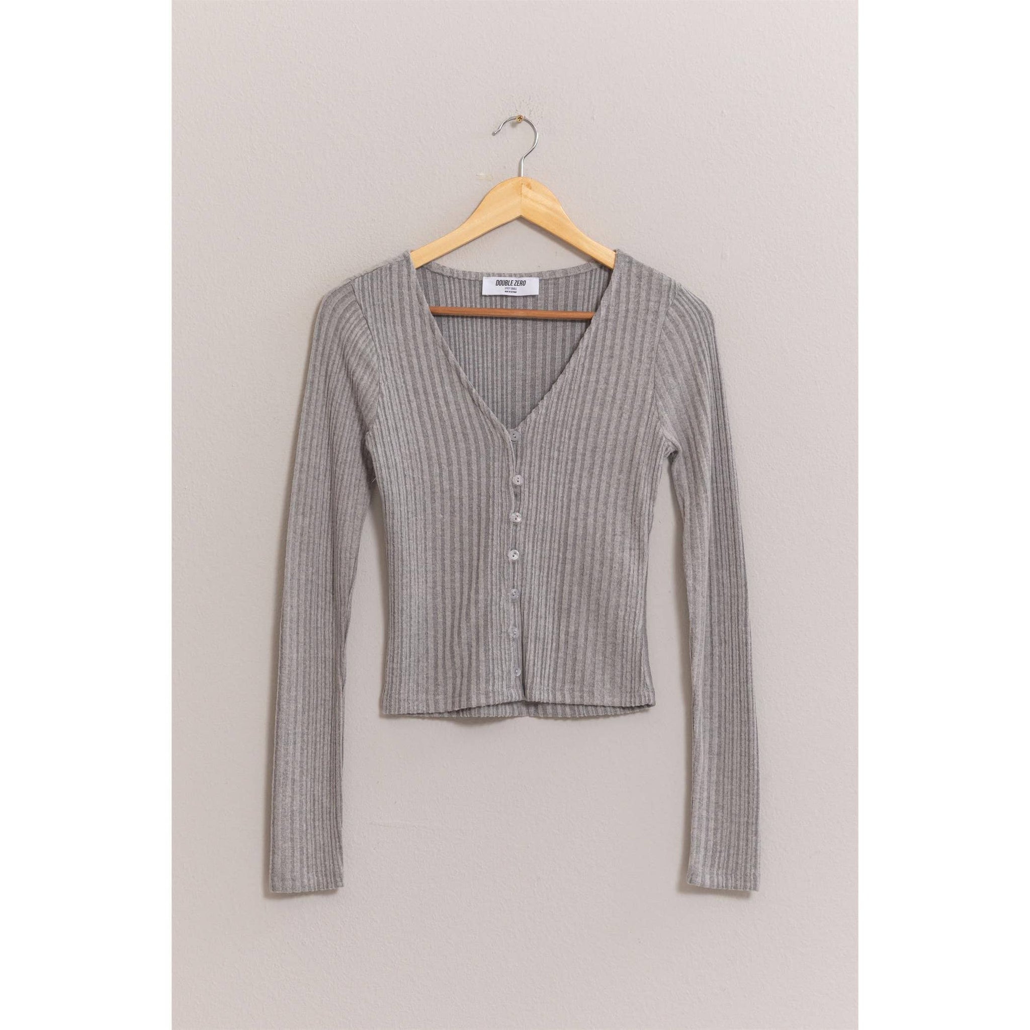 Unwind boldly in the Brushed Ribbed Button-Front Top, crafted from a luxuriously soft brushed fabric that caresses your skin. Its daring V-neckline and long sleeves frame a figure-flattering bodice, complete with a sleek button placket for a touch of edgy sophistication. Blending rayon, polyester, nylon, and spandex, this top offers comfort with a confident fit. Designed in the USA, it’s your go-to for standing out while winding down.